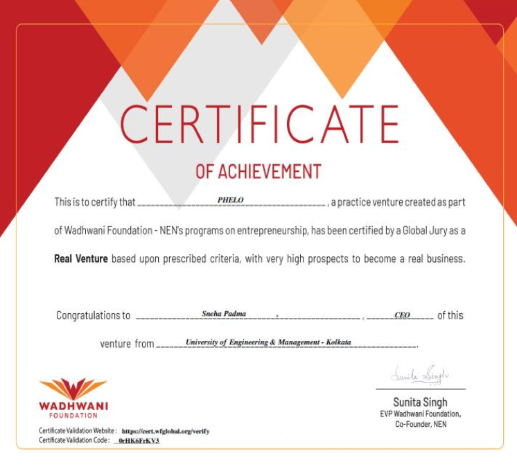 Certificate of Emerging Venture Excellence