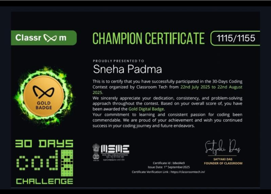 30 Days Coding Challenge- Achieved Gold